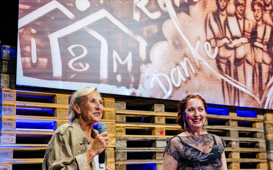 Die-Künstlerin-von-Sandartisten-Alla-Denisova-zusammen-mit-der-Moderatorin-des-Jubiläumsabends Sep. 10, 2025 Die Künstlerin von Sandartisten Alla Denisova zusammen mit der Moderatorin des Jubiläumsabends
