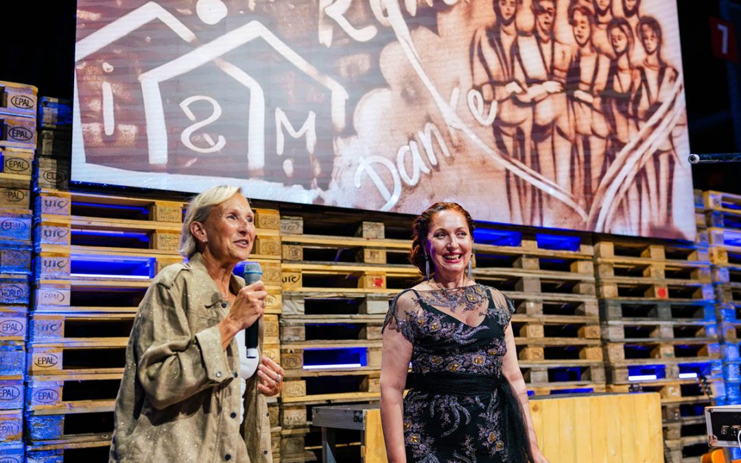 Die-Künstlerin-von-Sandartisten-Alla-Denisova-zusammen-mit-der-Moderatorin-des-Jubiläumsabends Sep. 10, 2025 Die Künstlerin von Sandartisten Alla Denisova zusammen mit der Moderatorin des Jubiläumsabends