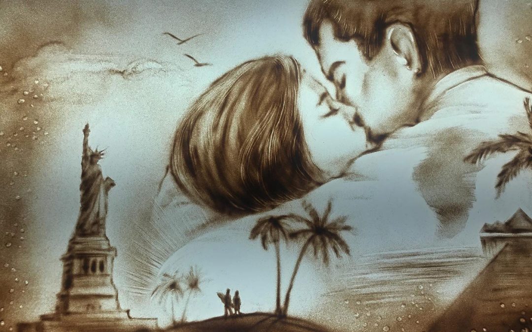 Die Sandartisten – Lina Li zeigt Sandmalerei eines Liebespaares