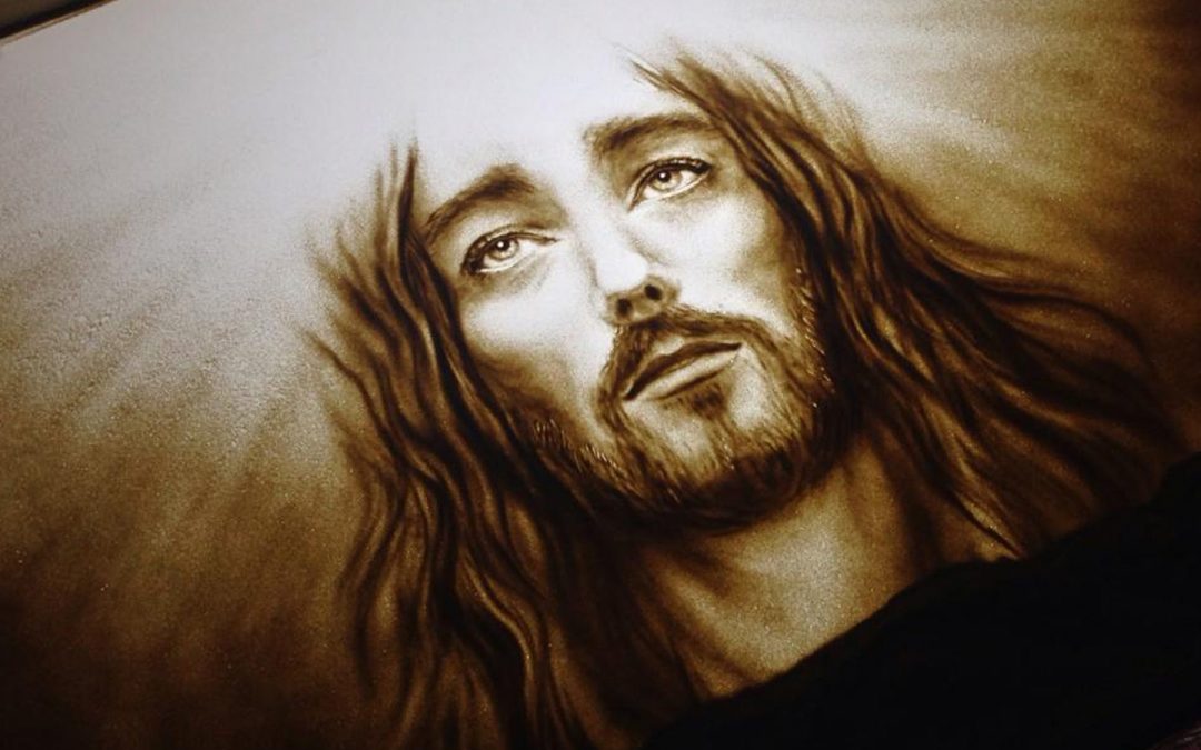 Sandmalerei Jesus – Porträt in Sandkunst