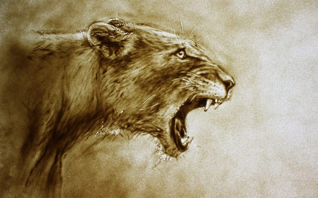 Sandmalerei Löwe – Tierporträt in Sandkunst